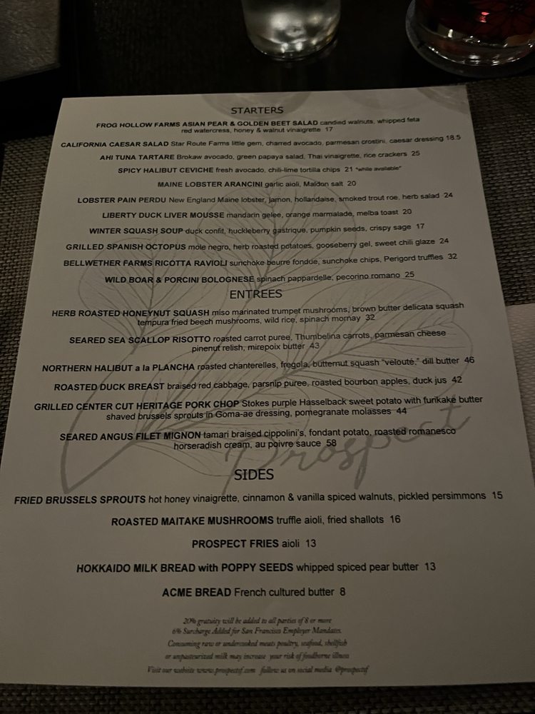 Located in the heart of San Francisco, Prospect offers a fresh take on New American cuisine, combining upscale dining with a vibrant, inviting atmosphere. The menu cleverly balances seasonal ingredients and innovative techniques, making each dish a delightful journey. Highlights include the Ahi Tuna Tartare, served with crunchy puffed rice crackers, and the Burrata & Spring Vegetable Salad, celebrated for its vibrant flavors and exquisite presentation.